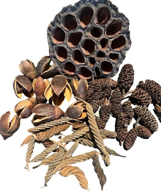 This collection will include at least - One Lotus Pod , 10 Bakuli Pods, 10 Birch Cones, and 10 Twistie Pods