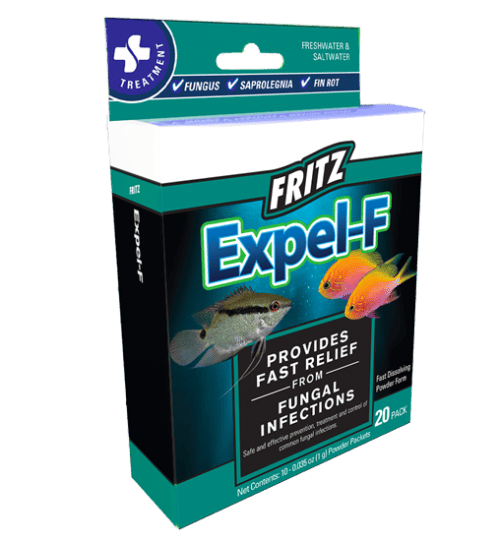 Use one packet of Expel-F per 10 gallons (38 L) in a small container or glass, mix, and add to a high flow area in sump. Powder will dissolve in system over time. Treatment only requires one dose of medication. Treatment period is 14 days.